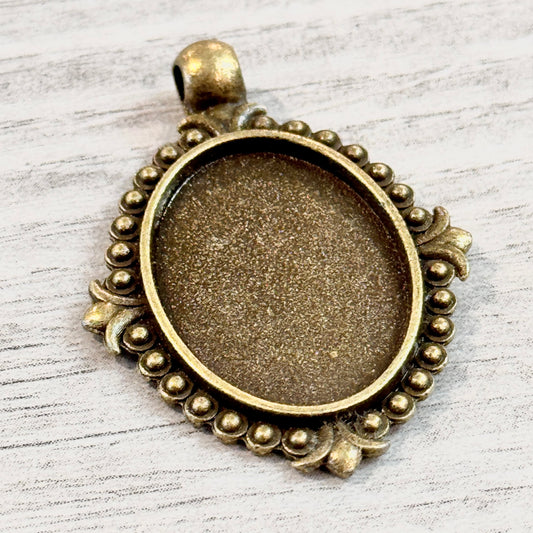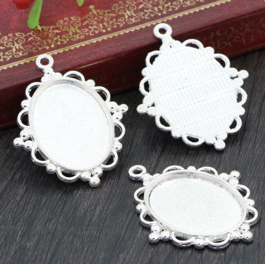 18x25mm Decorative Beaded Lace Edged Pendant Setting