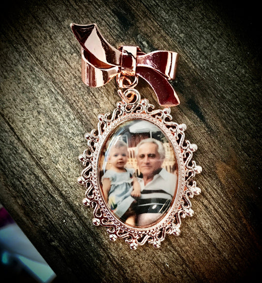 Photo Charm Pendant for Boutonniere Memorial Keepsake and pin