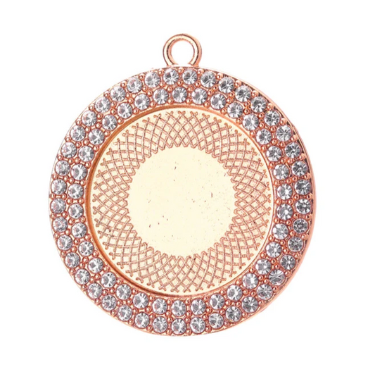 6 - 25mm Double Rhinestone Round Pendant Setting Tray 1 inch