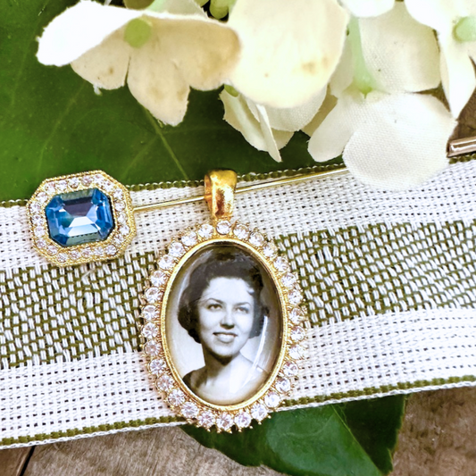 Picture charm and Brooch Loss of Loved One Photo Something Blue